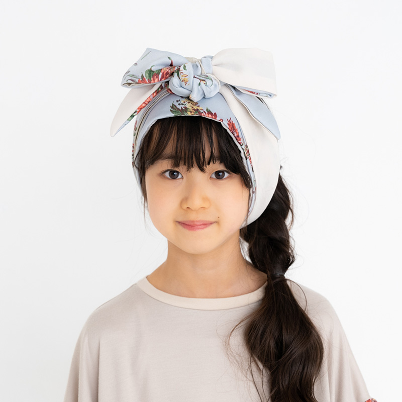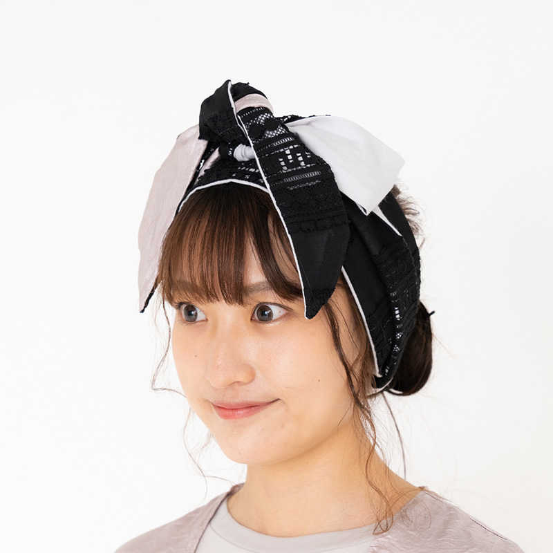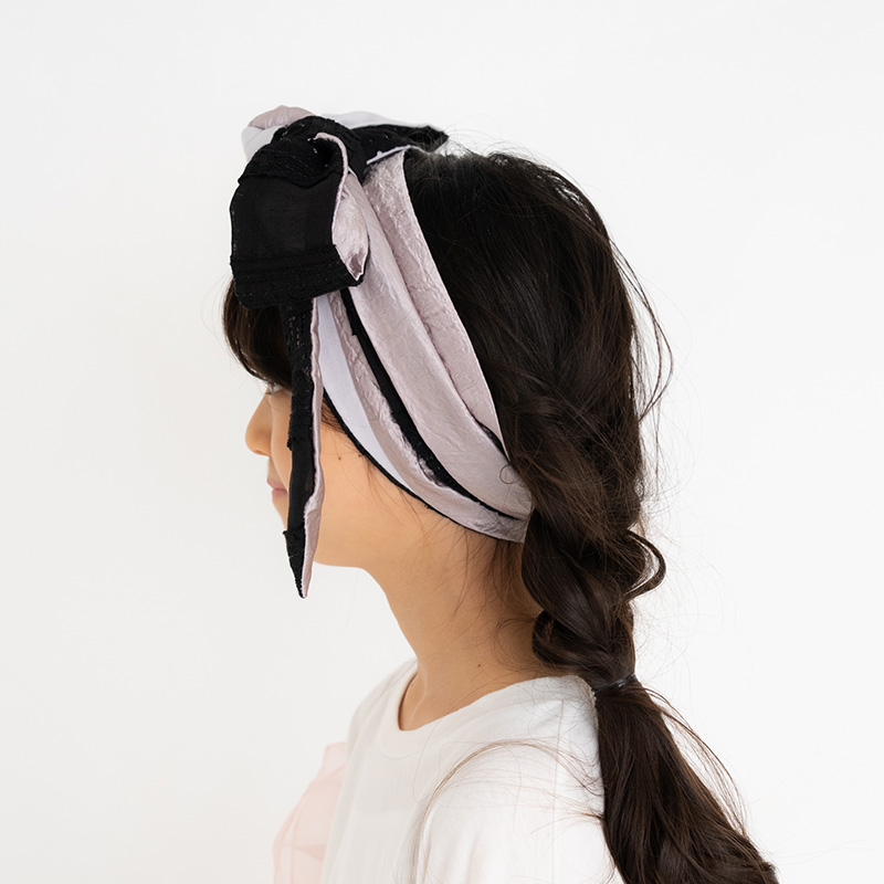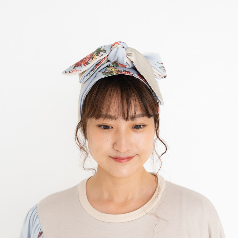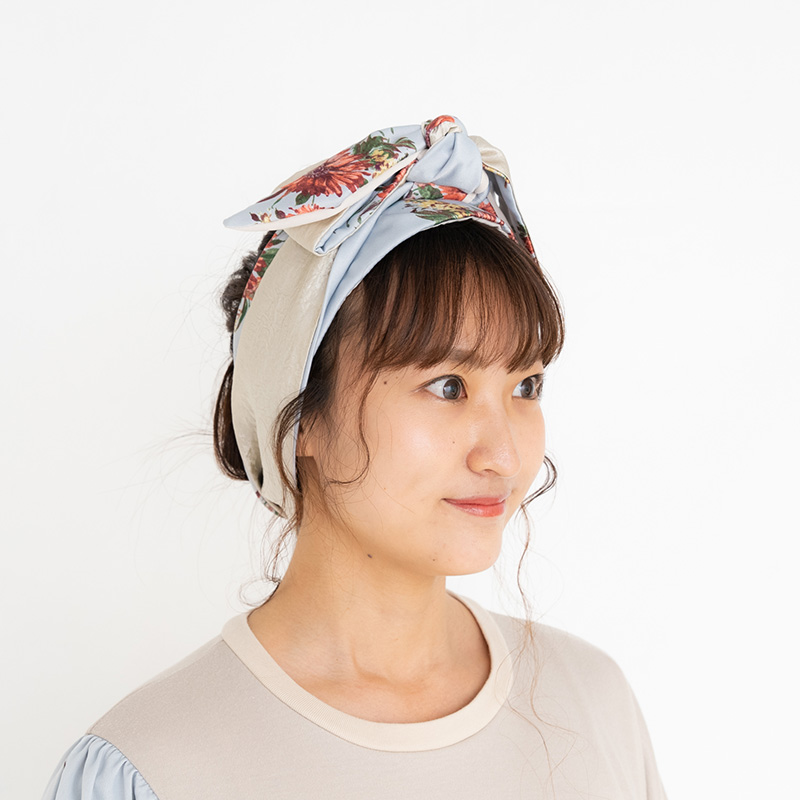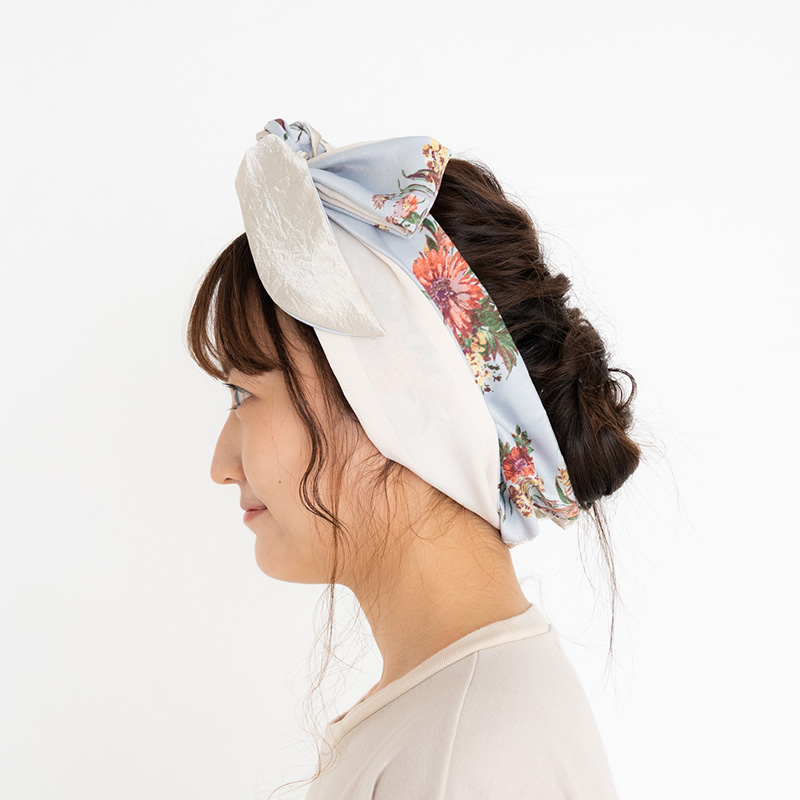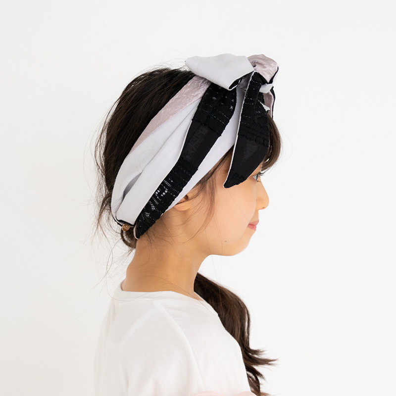 生地合わせにこだわった異素材切り替えのベルトターバンです。
