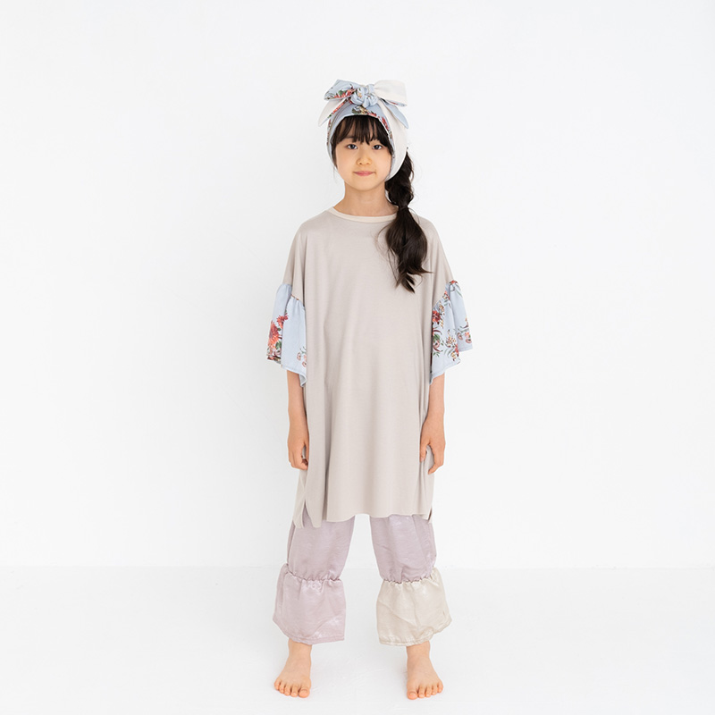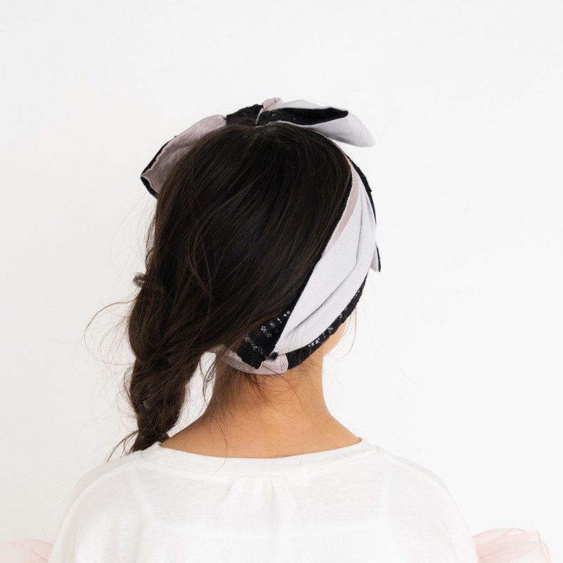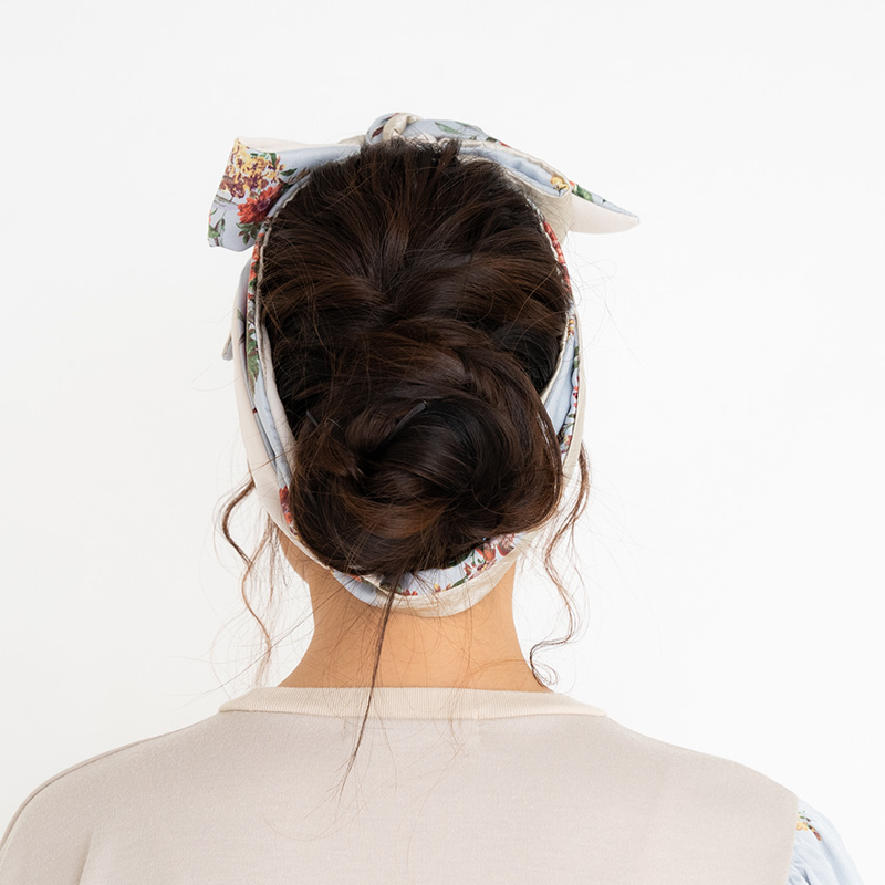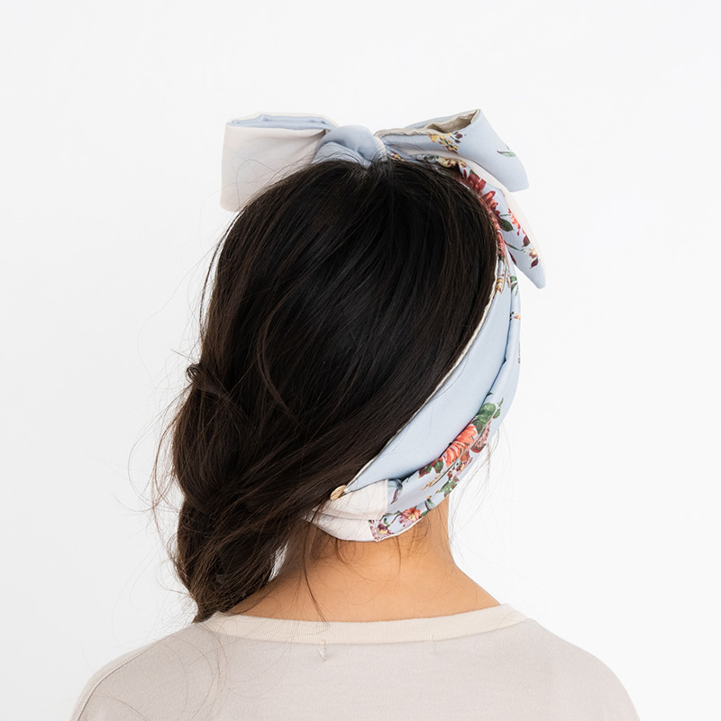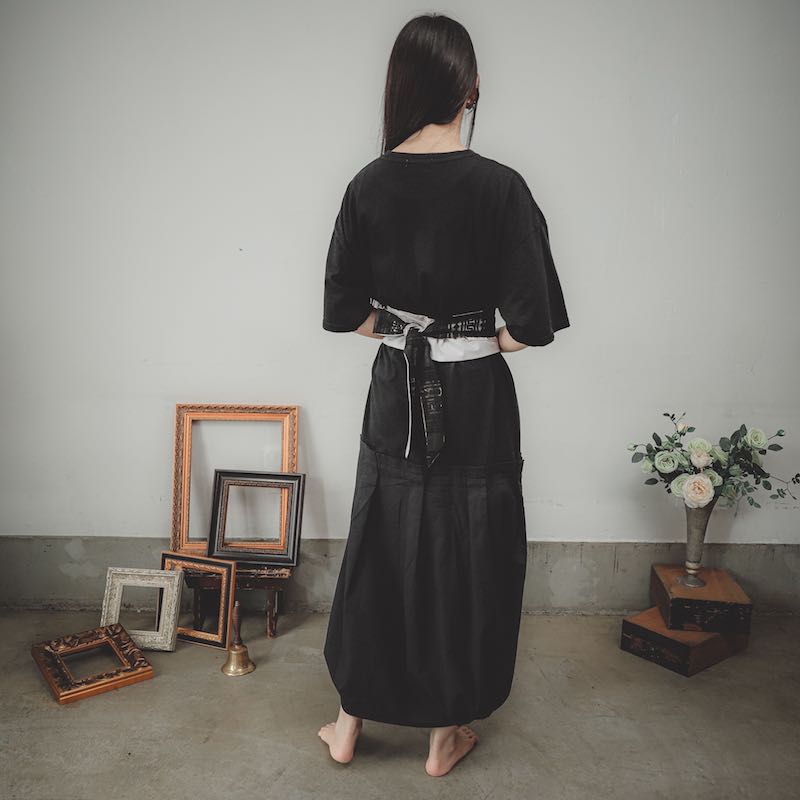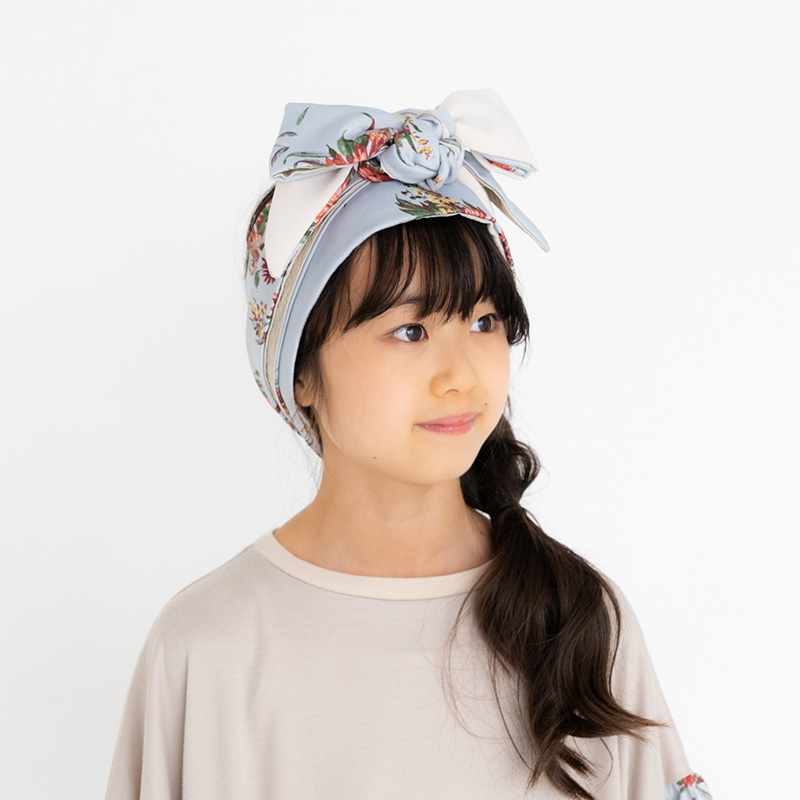 生地合わせにこだわった異素材切り替えのベルトターバンです。