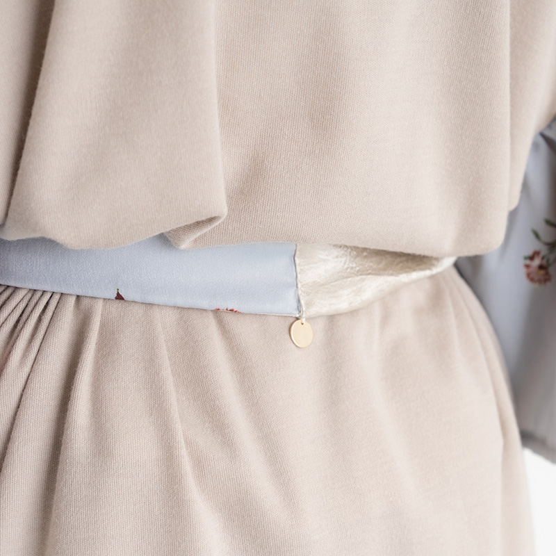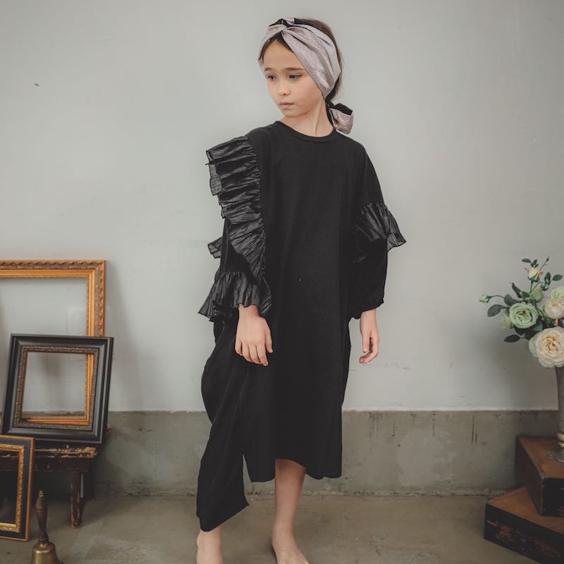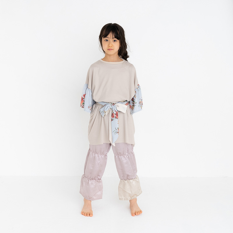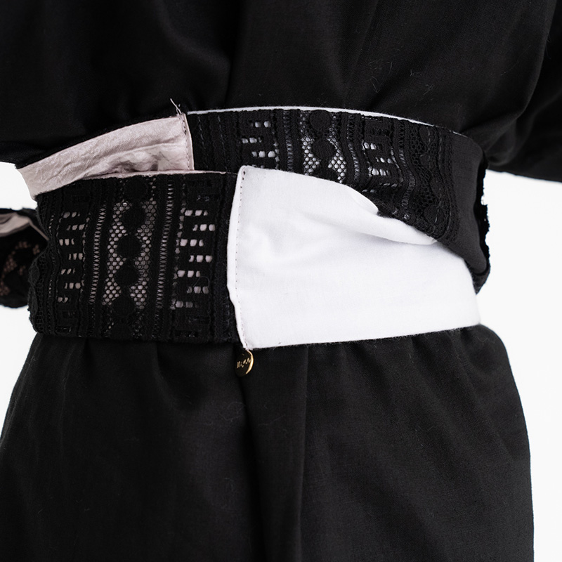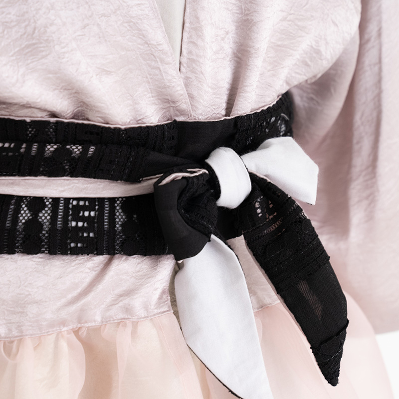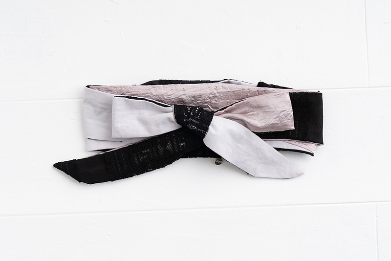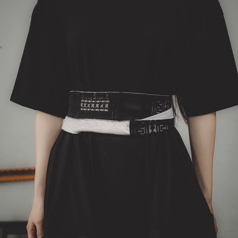 生地合わせにこだわった異素材切り替えのベルトターバンです。