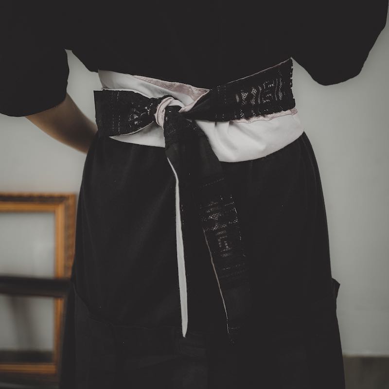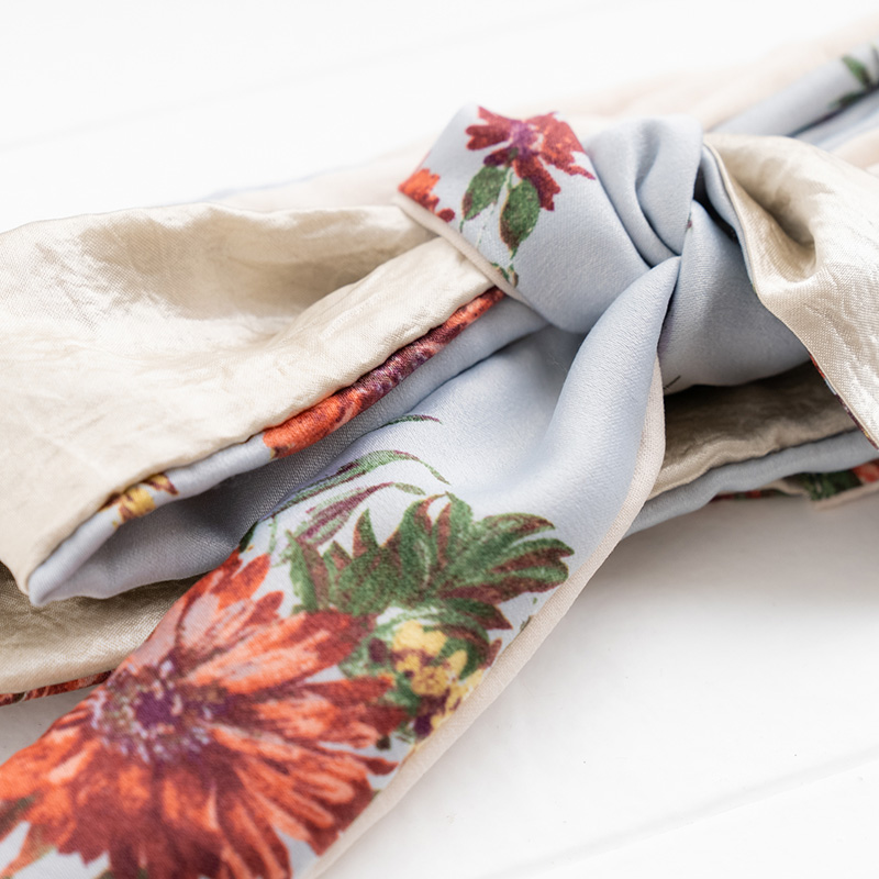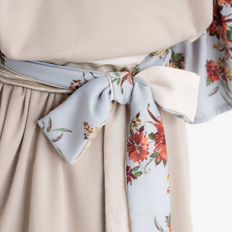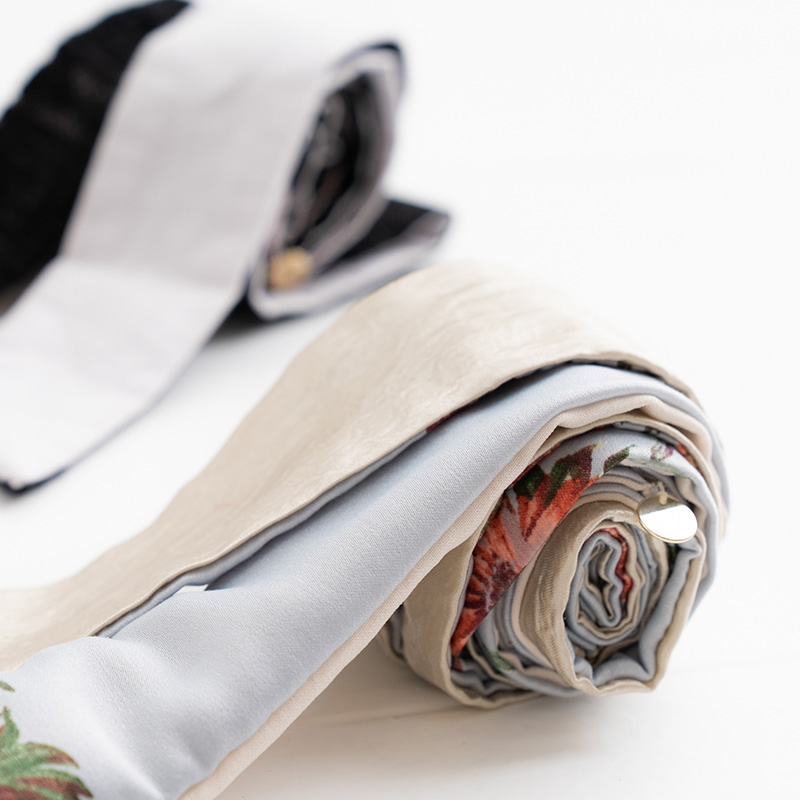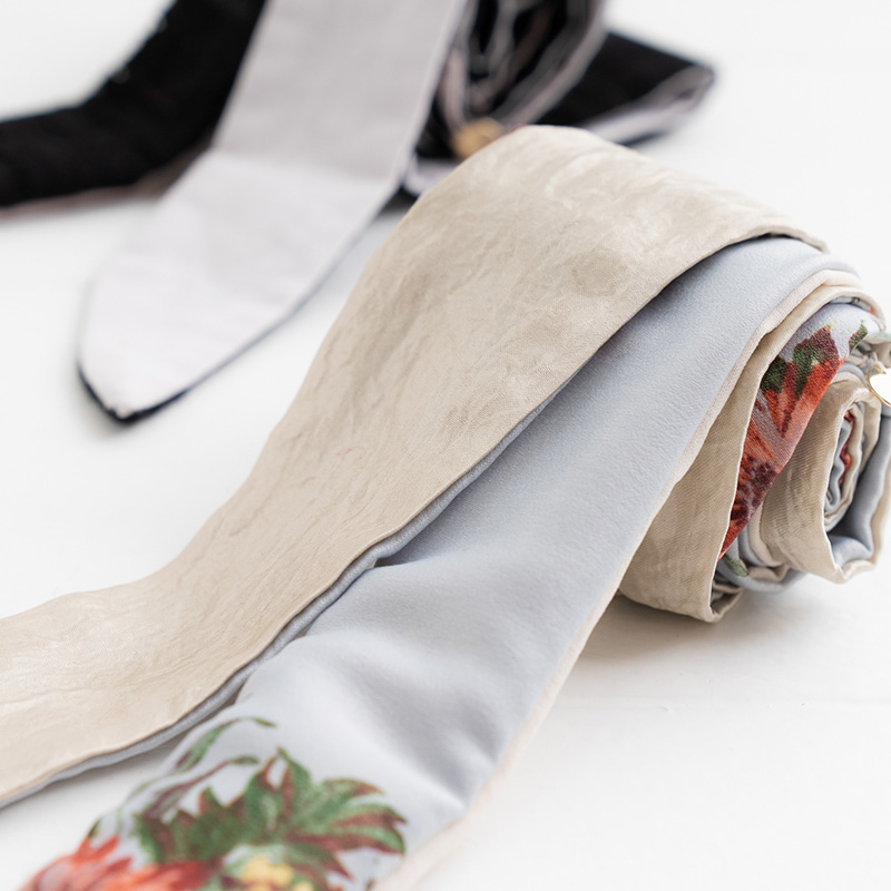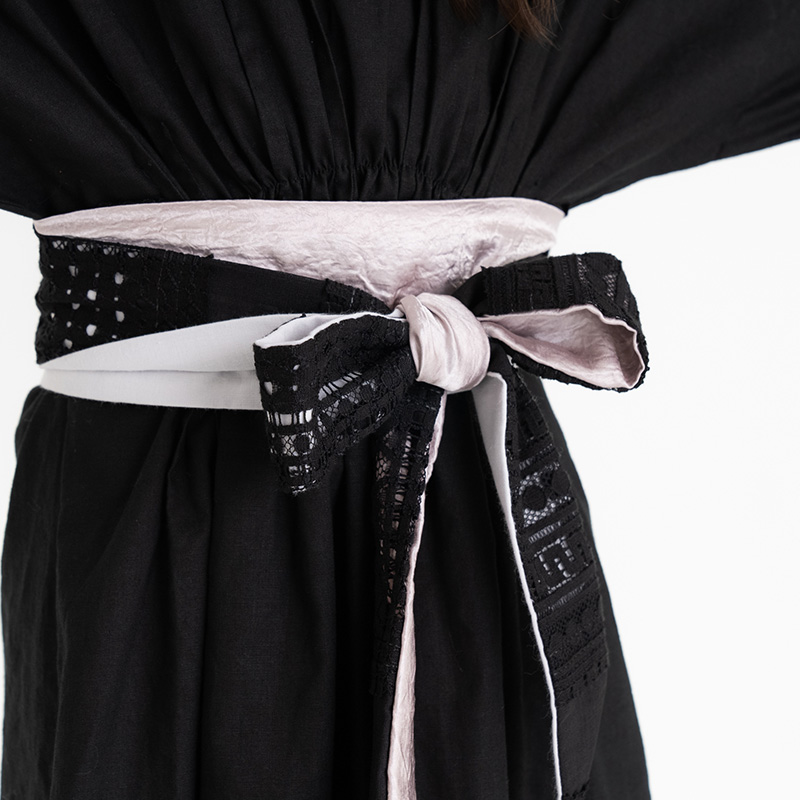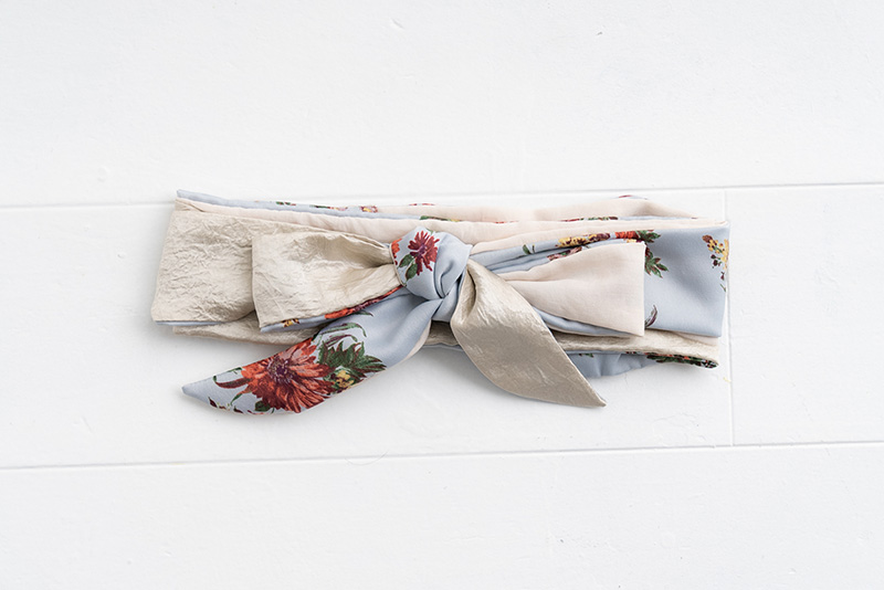 ワンピースやロングトップスのブラウジングにベルトとしてお使いいただいたり、頭にくるくる巻いてターバンにも。