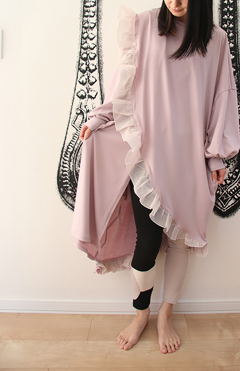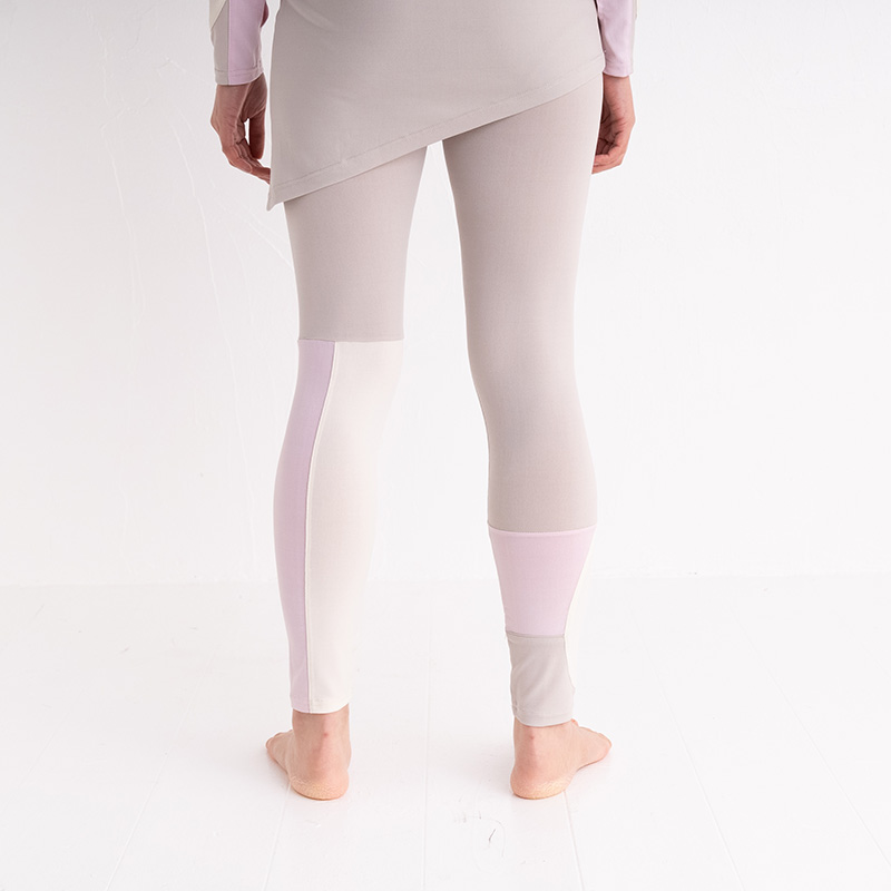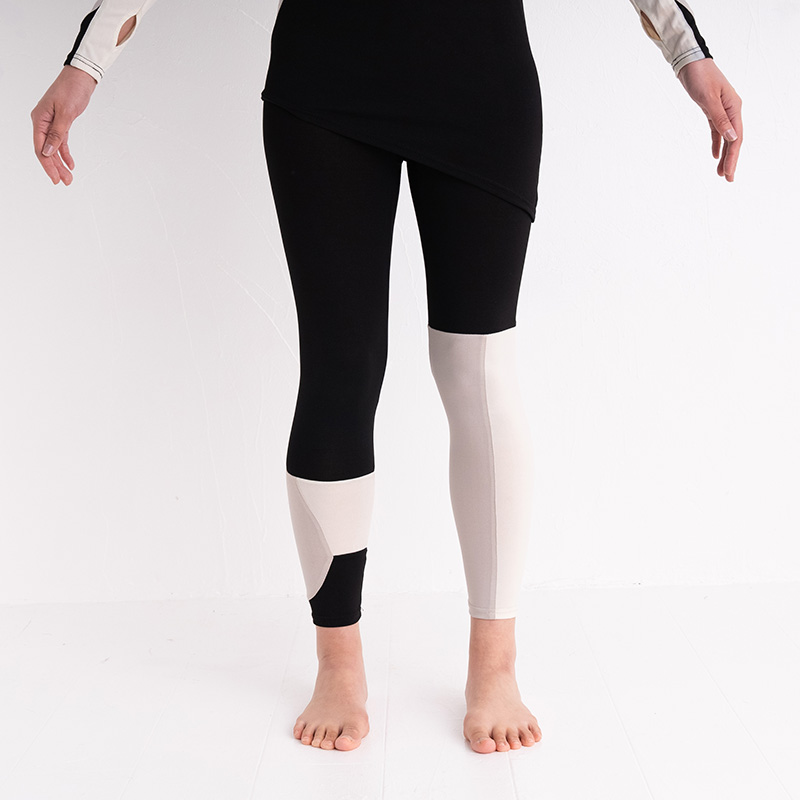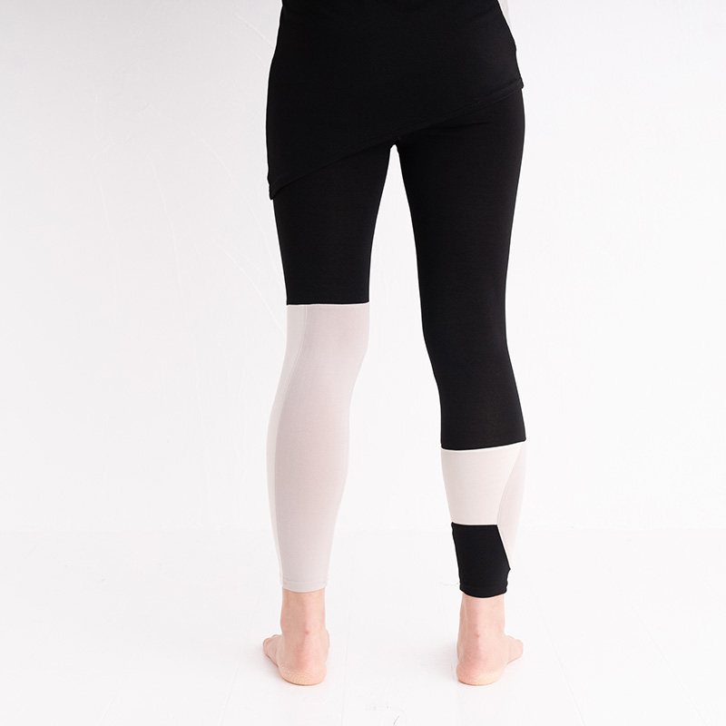 さらりとした生地感のレギンスです。左右違う色の組み合わせに、切り替え部分もあり、様々な角度からのデザインを楽しんでいただけます。ワンピースやスカートとのレイヤードでは、足元の切り替え部分を見せてコーディネートをメリハリを加えてくれるアイテムです。