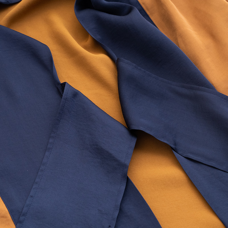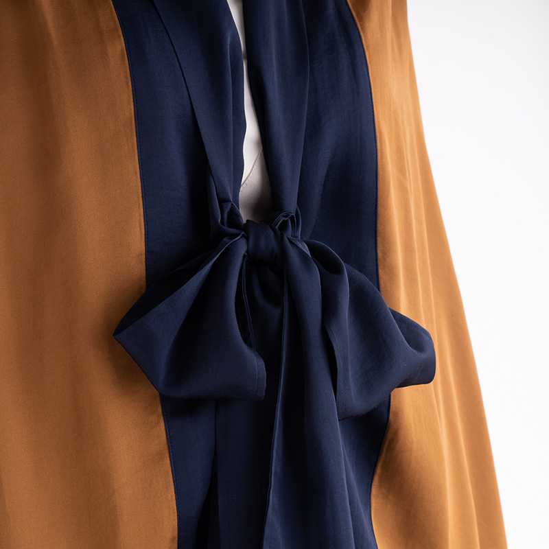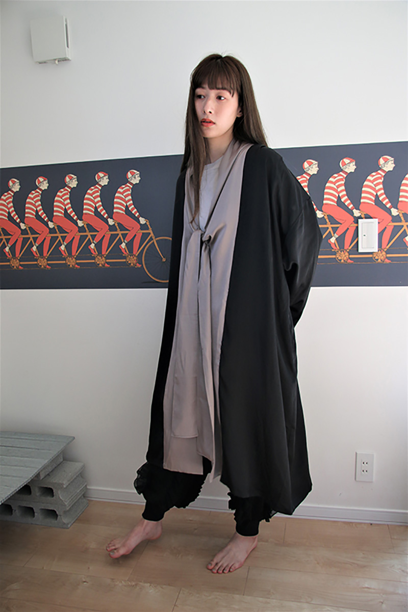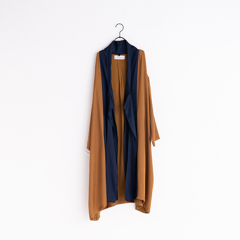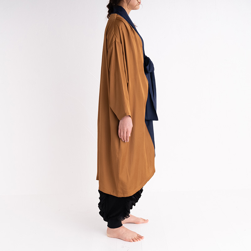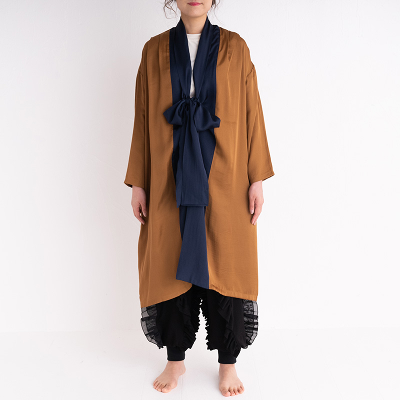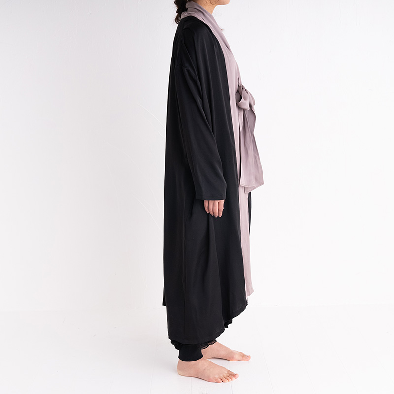 バイカラーでモードな雰囲気があり、リラックス時間はもちろん、外出時にもさらりと羽織っていただけます。