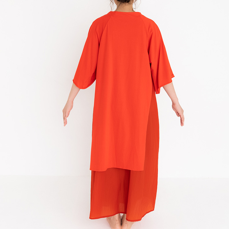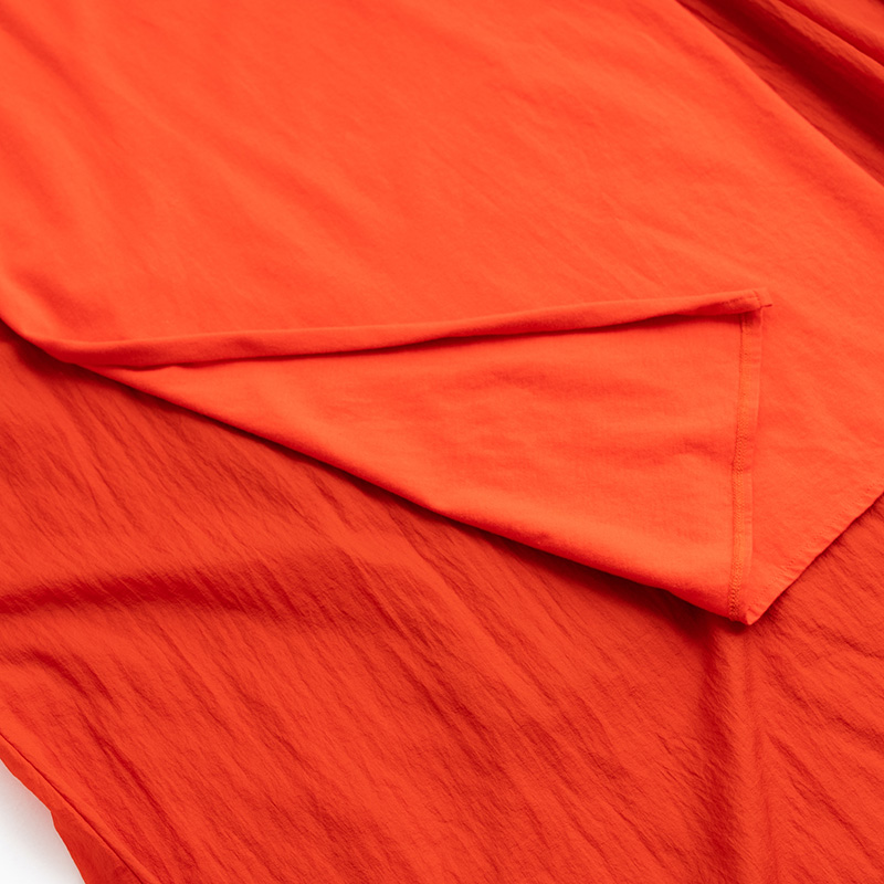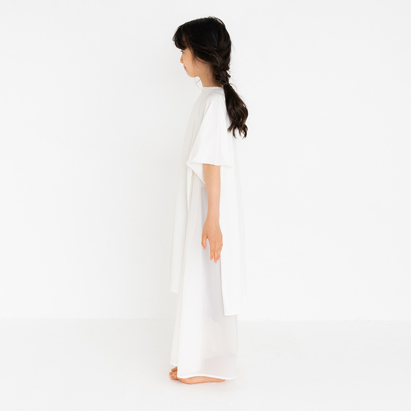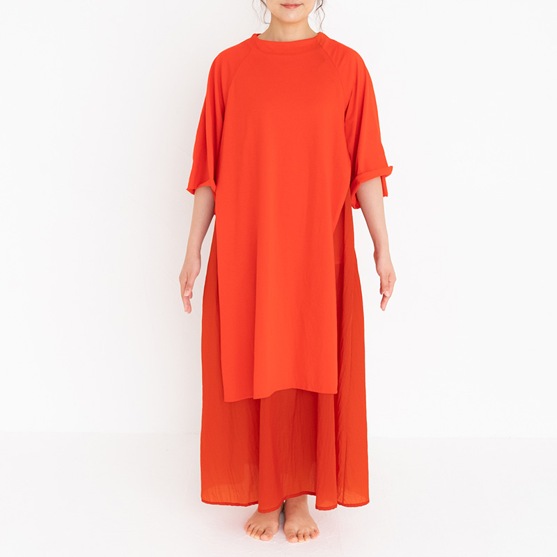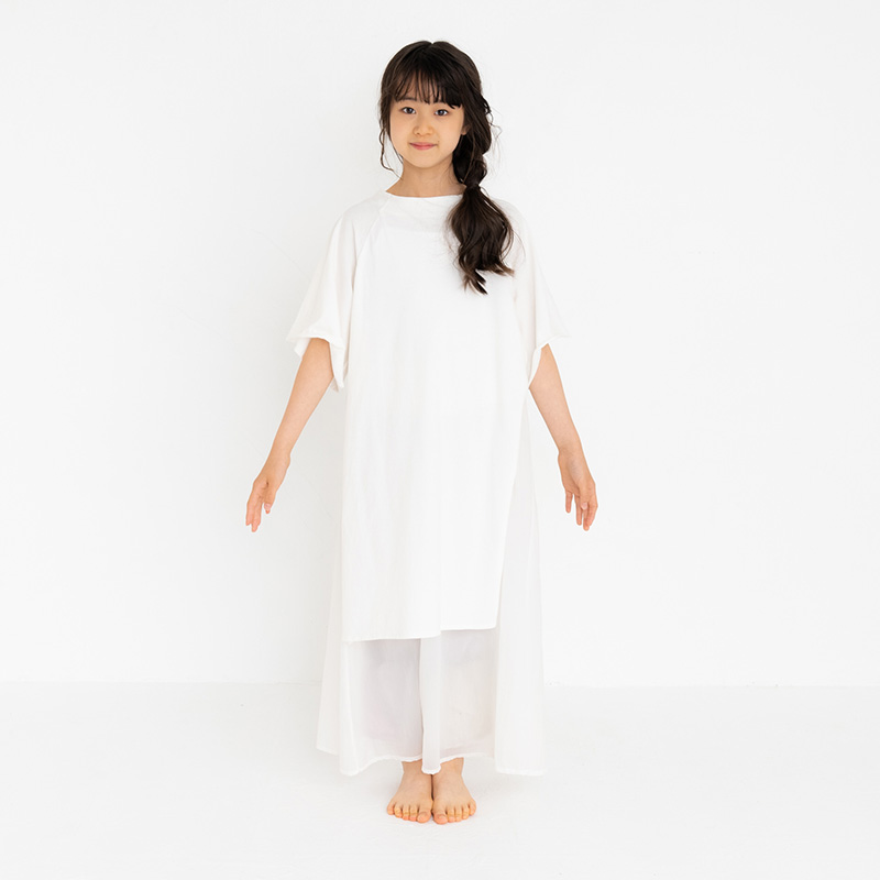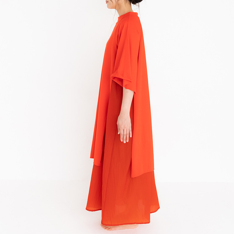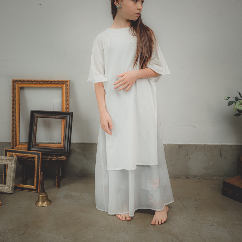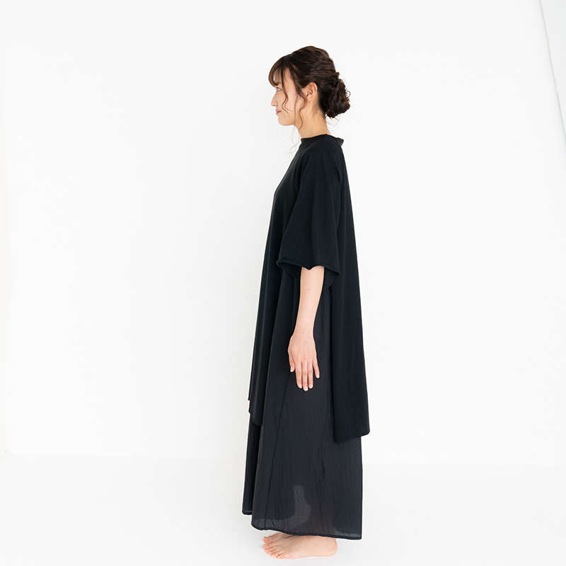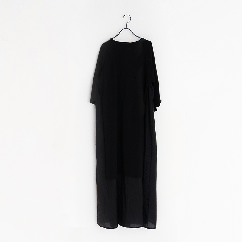 肌触りのよいカットソーとシアー感あるナイロン素材のレイヤードワンピースです。