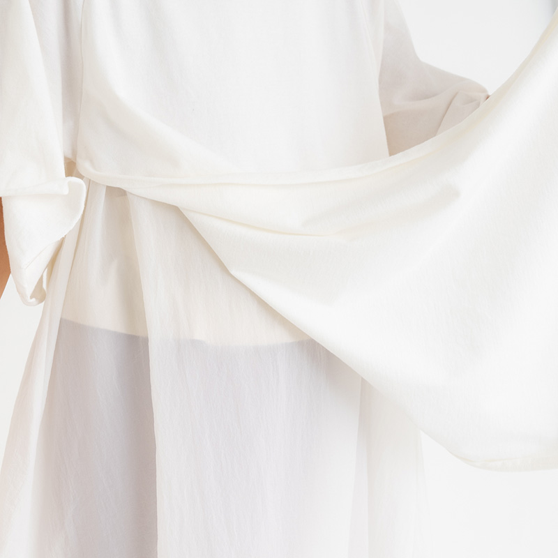 シワ加工が施されたシアー感あるナイロン素材はナチュラルな質感で、やわらかな風合いなのでカジュアルで涼やかな印象です。