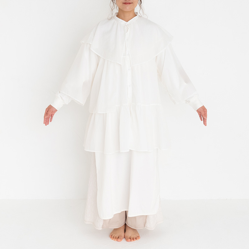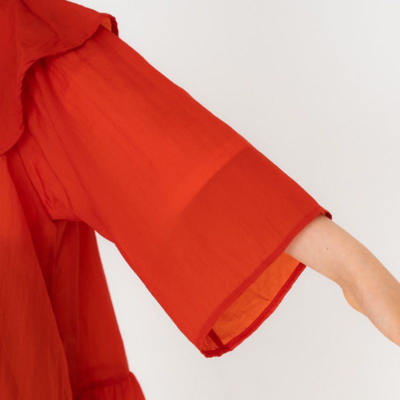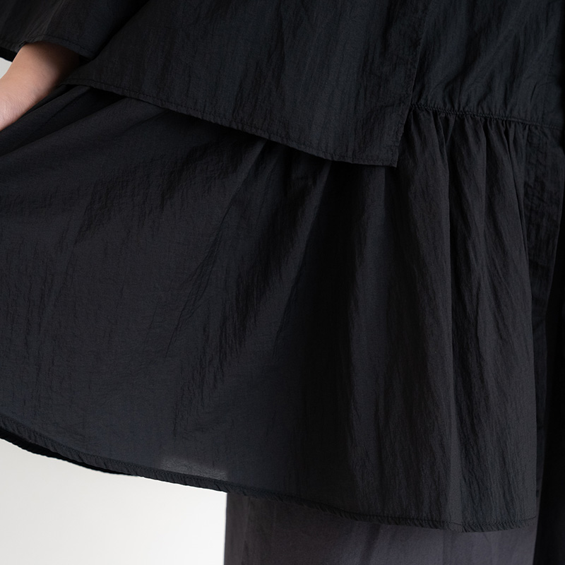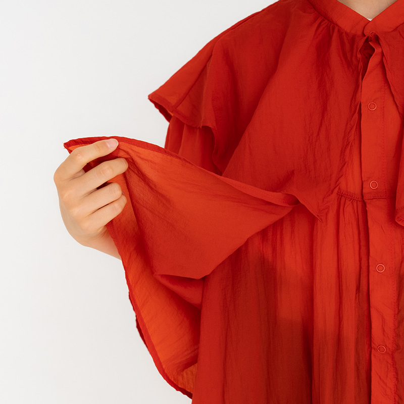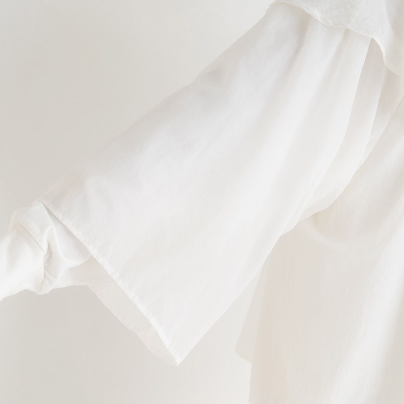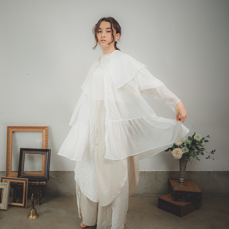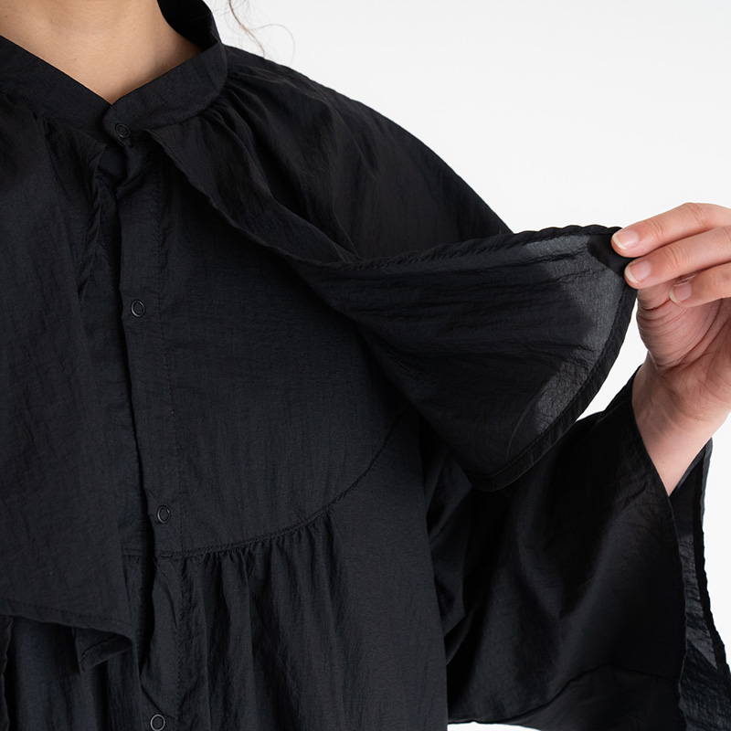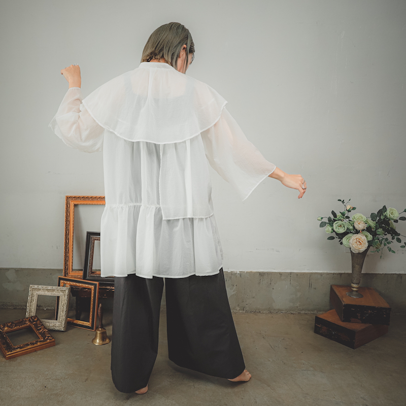 とっても軽くて程よいシアー感が涼やかなのでスナップを外して羽織りとしてもお使いいただけます。